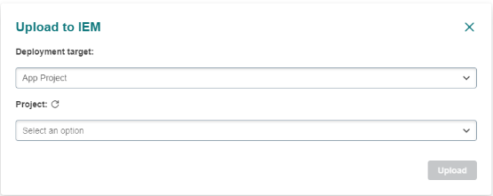 Once a version has been created, you can upload your application to the IEM. Carefully select the upload target (Catalog or App Project) as following: