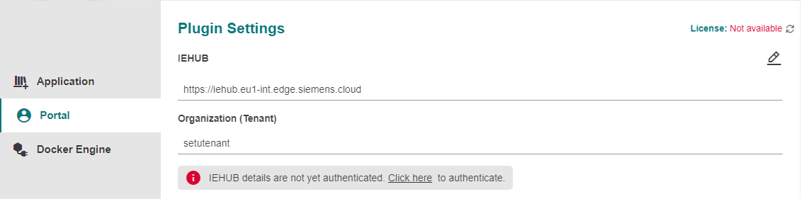 Add your IE Hub URL and organization (tenant) name which includes your Mendix Device License.