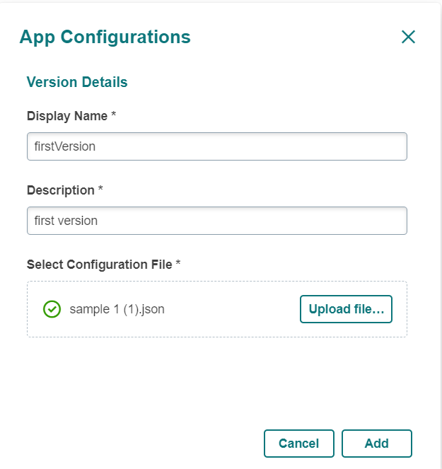 To add a required file to a specific version, click the 'add' icon in the List Configurations screen.