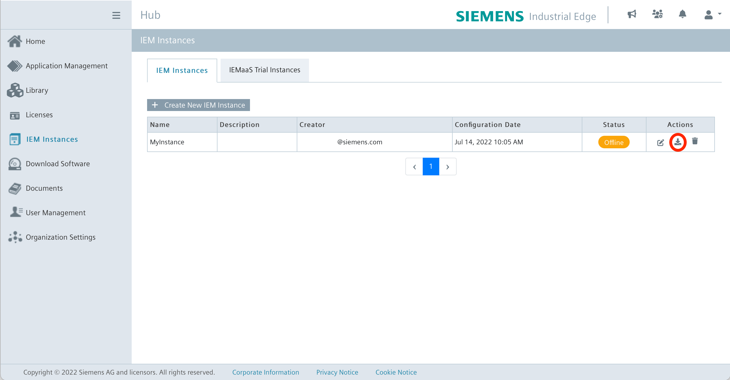 - Create an IEM Instance in the Industrial Edge Hub