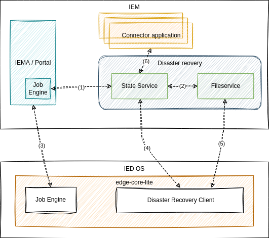 | ③ | IED's job engine & IEMA's job engine communication follows the default mechanism within the system, using a JWT token signed with generated private key on the device, verified with the public key located in IEM. |